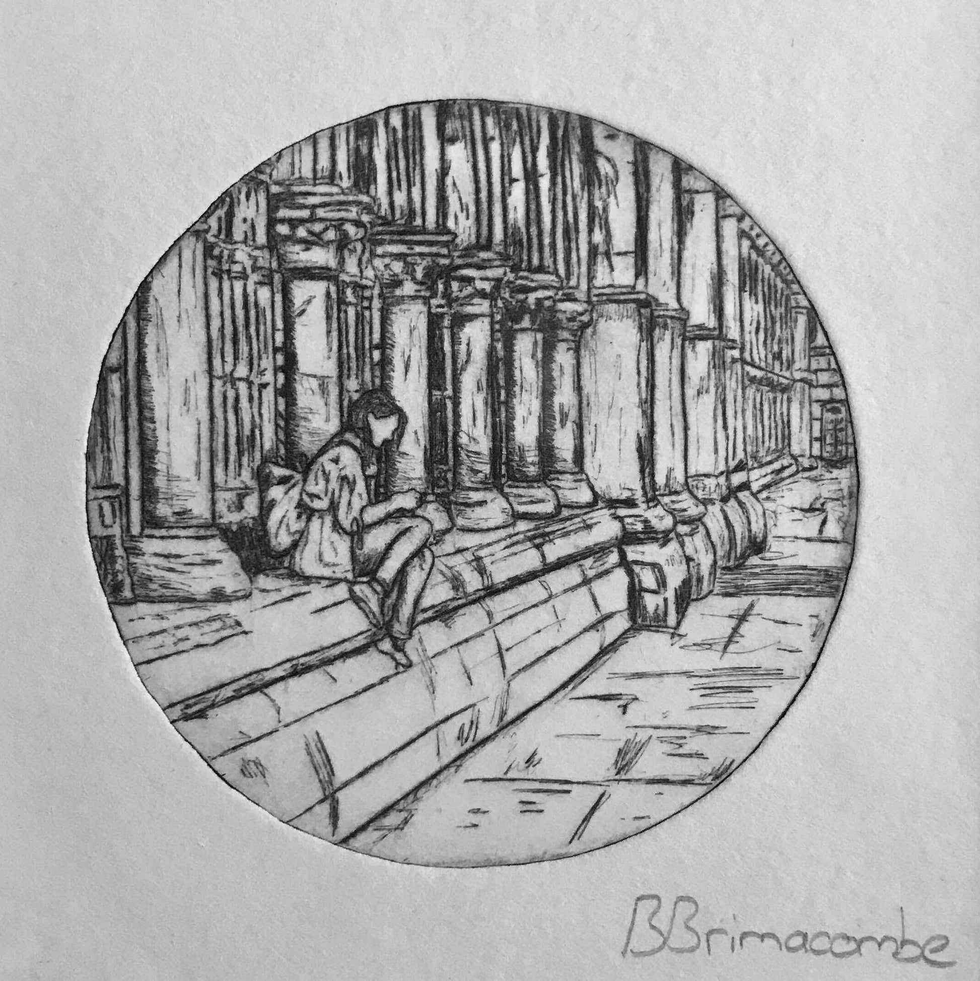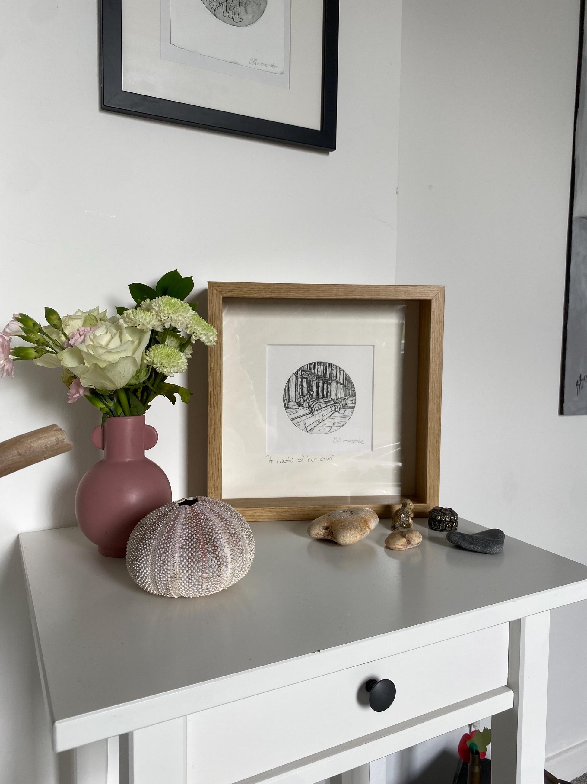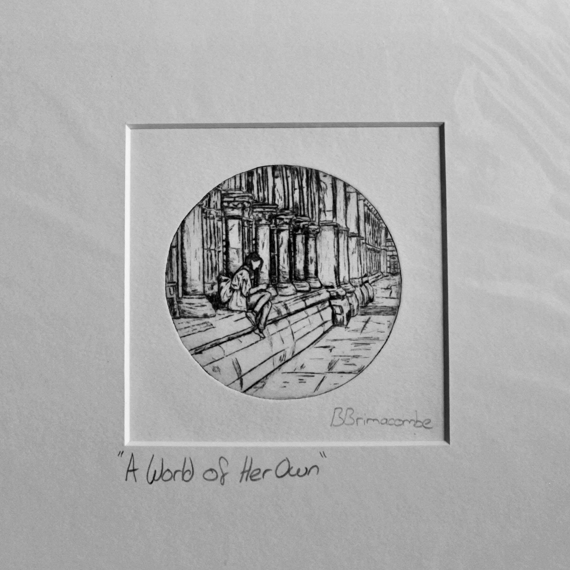 Original dry point etching prints of my travels. Mounted in a square, soft white mount. All mounts fit an IKEA Sannahed frame. Frame not included