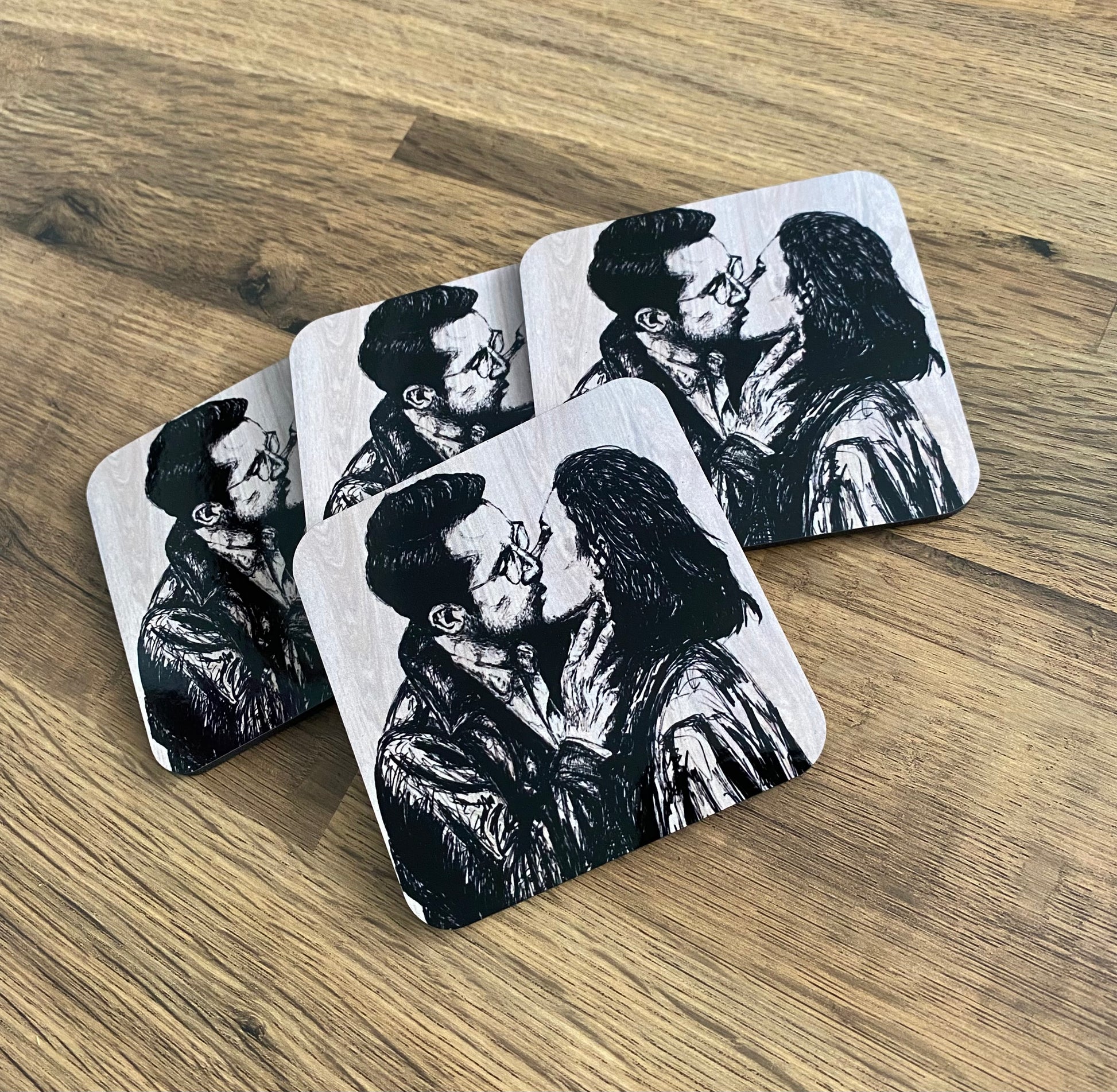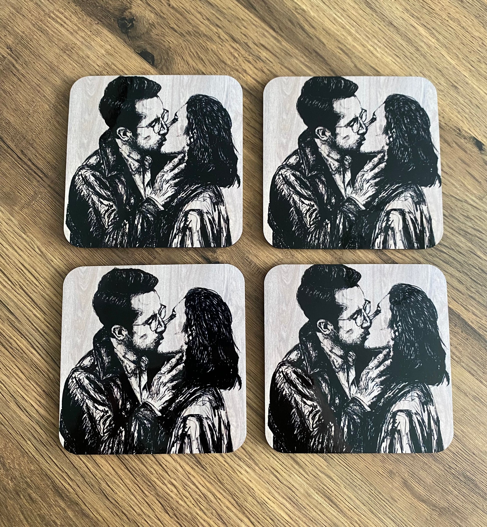 Coasters measure 90 x 90mm with 9mm rounded corners. Mare with a 3mm MDF base, complemented by an additional 1mm cork layer for added protection. They have a durable and high-gloss finish, designed to withstand daily use with ease. With a heat-resistant coating, you can enjoy your hot beverages without worrying about damage to the coaster.