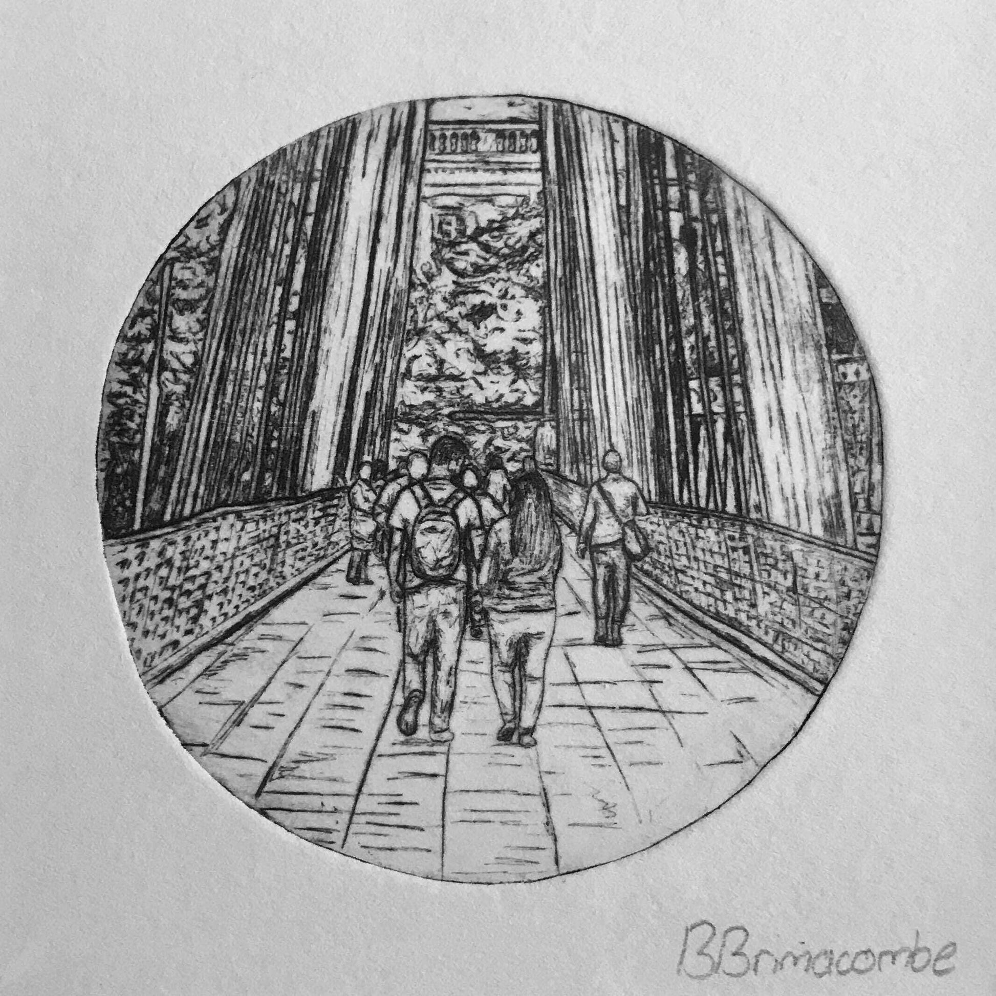 Original dry point etching prints of my travels. Mounted in a square, soft white mount. All mounts fit an IKEA Sannahed frame. Frame not included