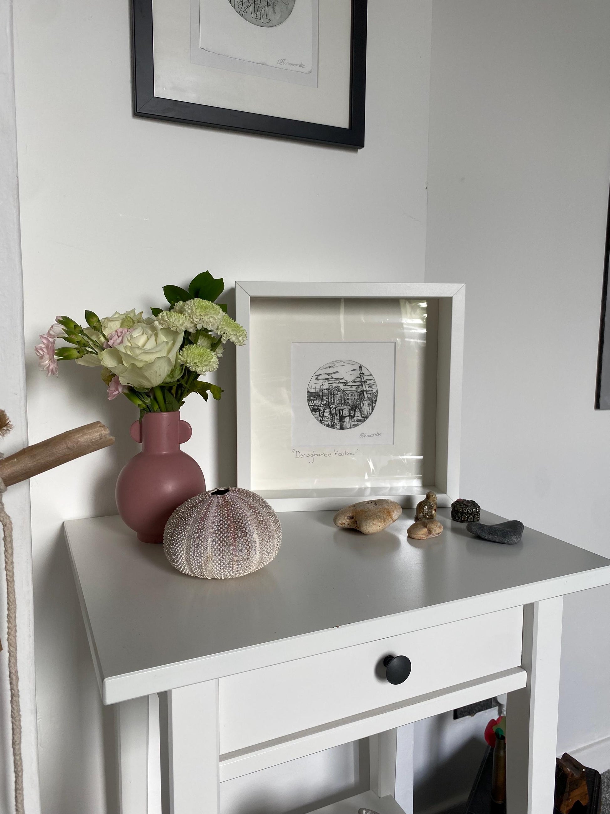 Original dry point etching prints of my travels. Mounted in a square, soft white mount. All mounts fit an IKEA Sannahed frame. Frame not included
