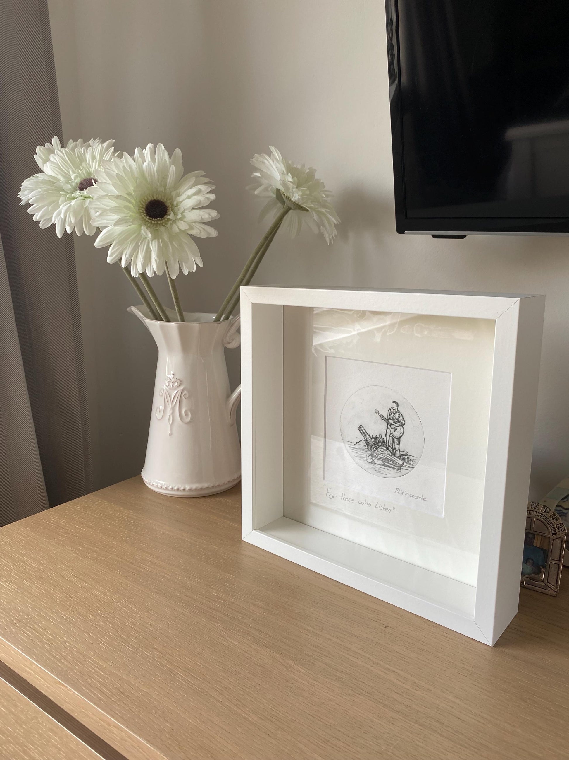 Original dry point etching prints of my travels. Mounted in a square, soft white mount. All mounts fit an IKEA Sannahed frame. Frame not included.
