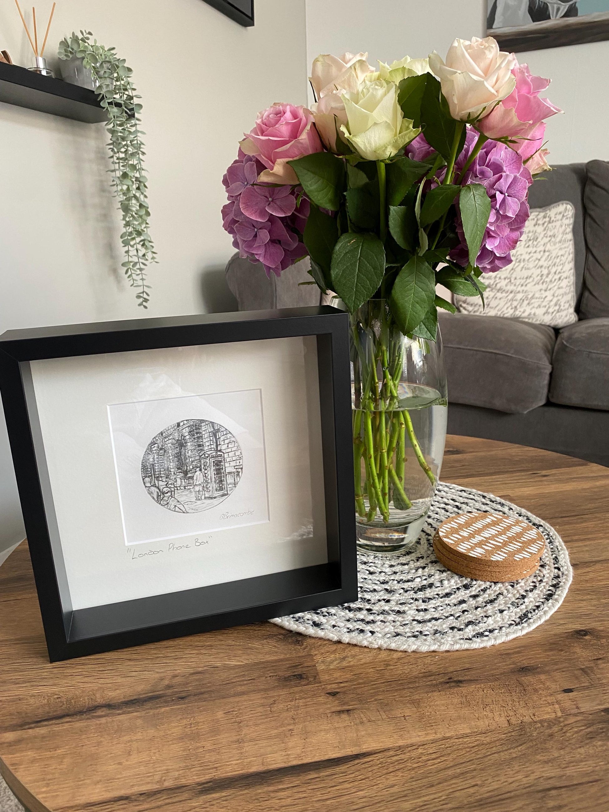 Original dry point etching prints of my travels. Mounted in a square, soft white mount. All mounts fit an IKEA Sannahed frame. Frame not included