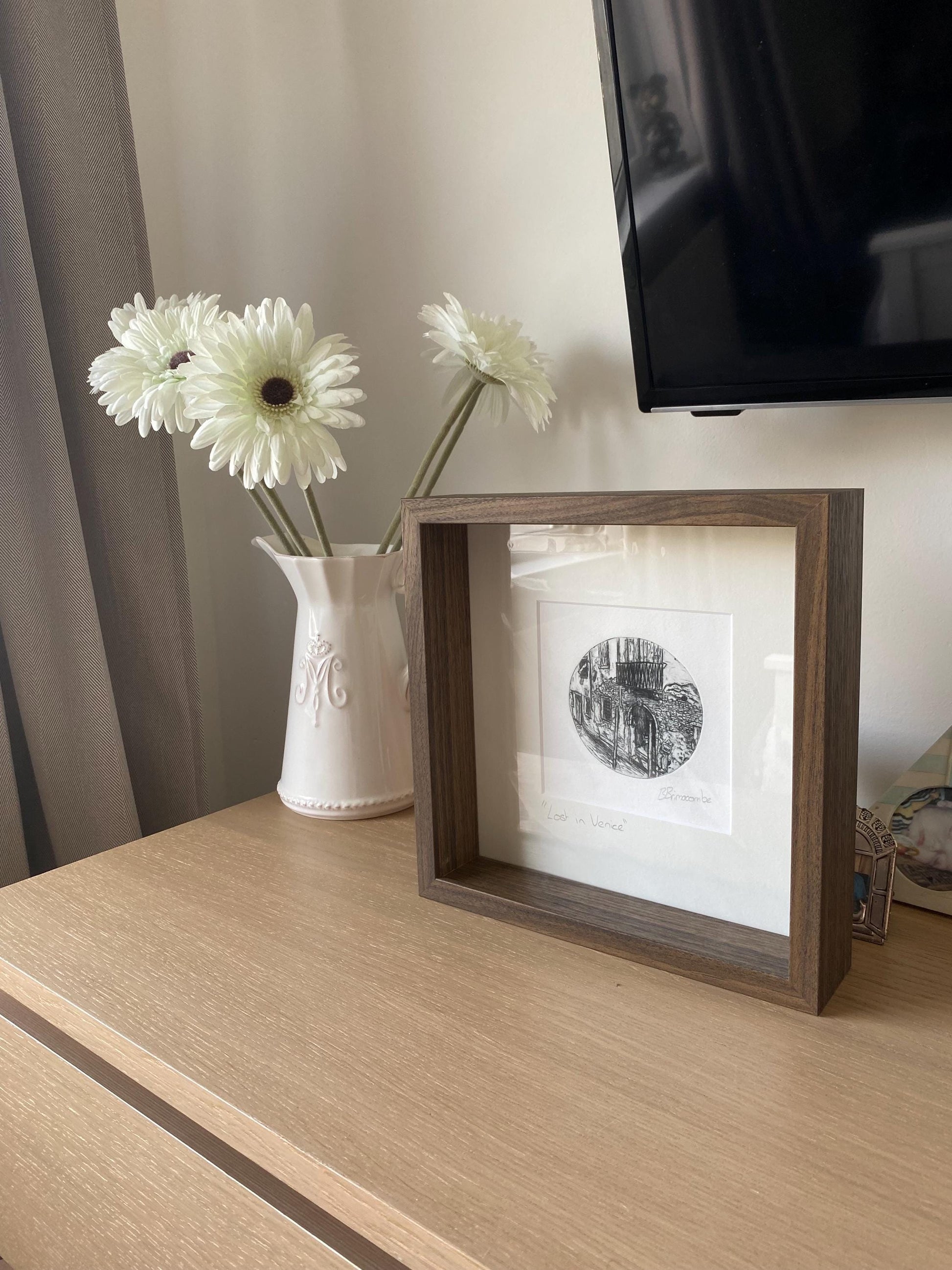 Original dry point etching prints of my travels. Mounted in a square, soft white mount. All mounts fit an IKEA Sannahed frame. Frame not included