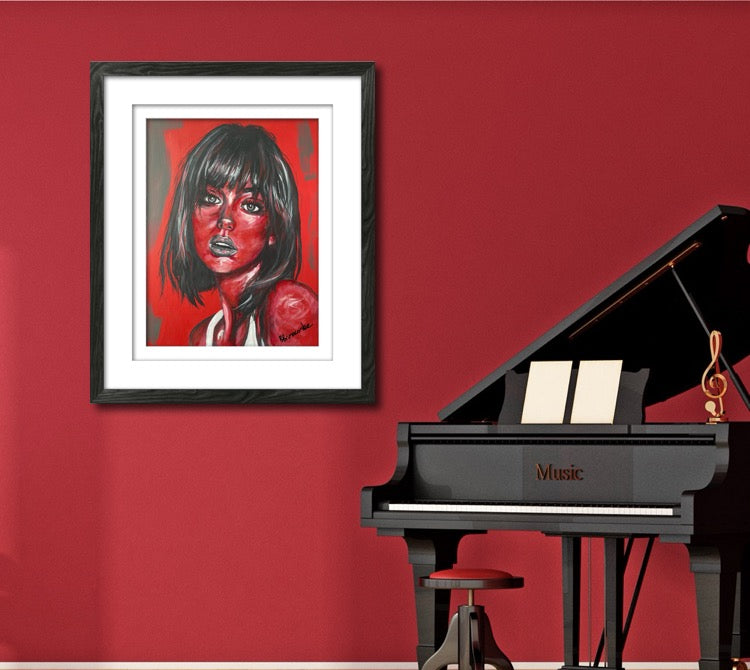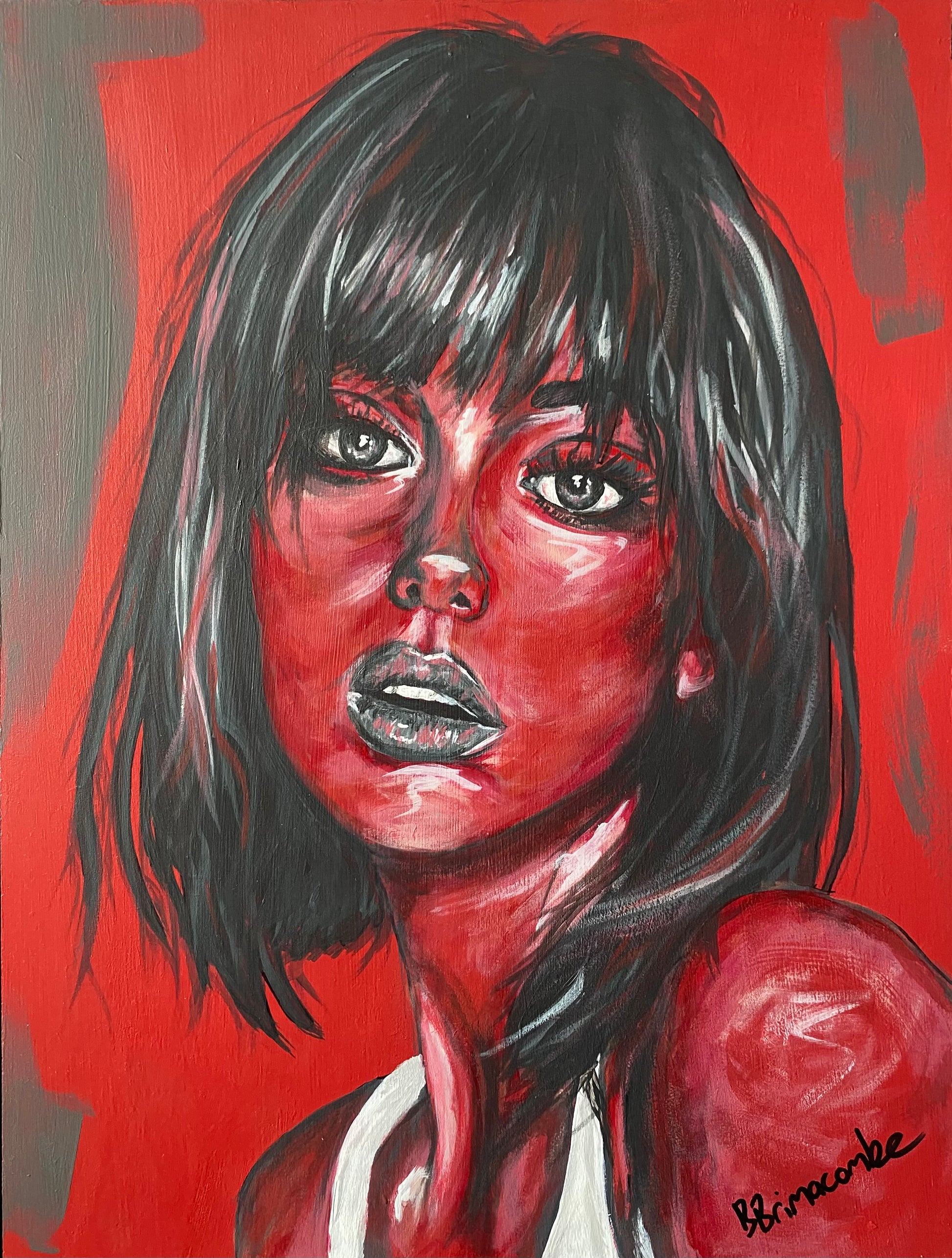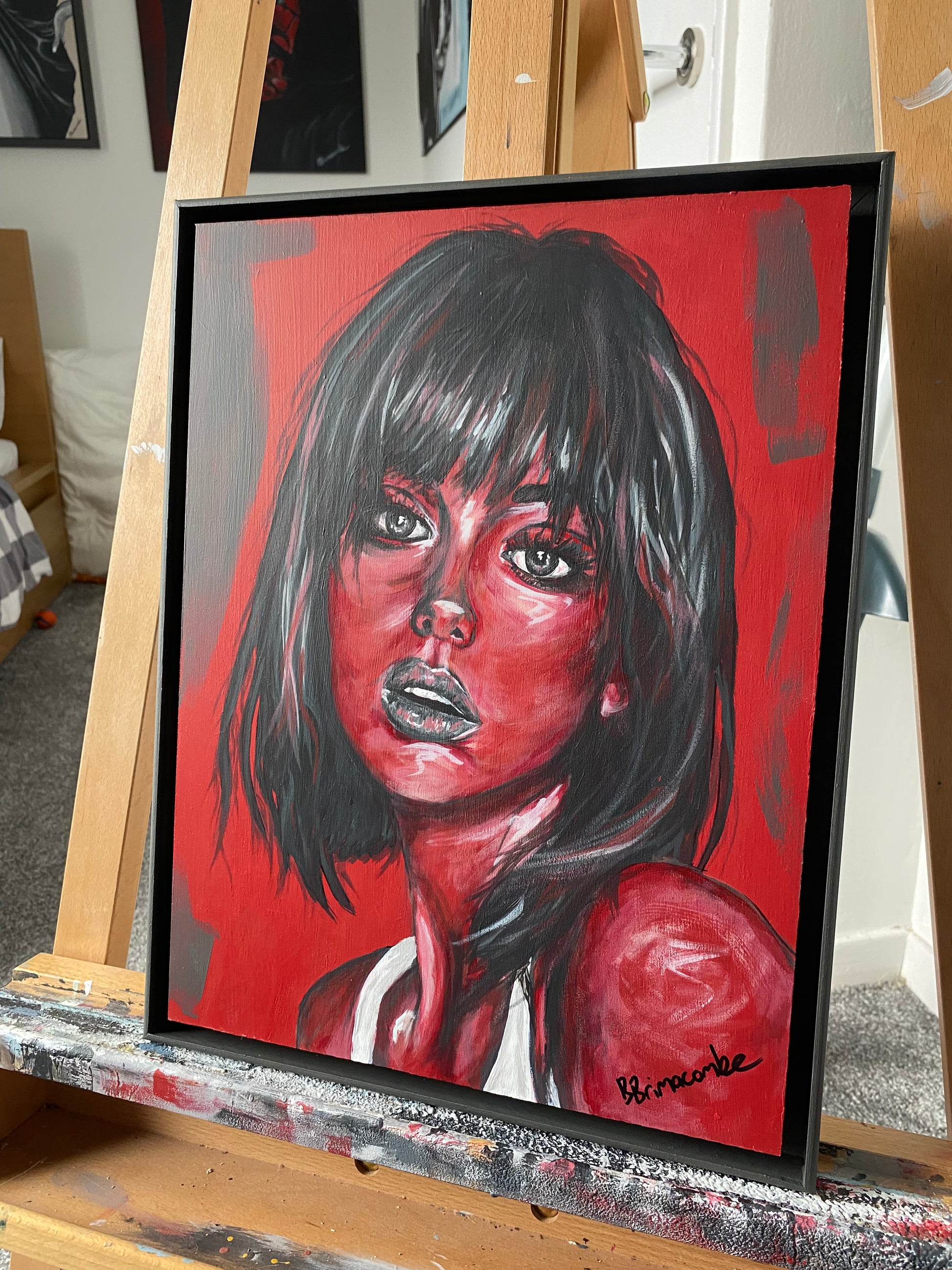 Framed in a grey, wooden, floating frame Emulsion paint on MDF board. Framed size