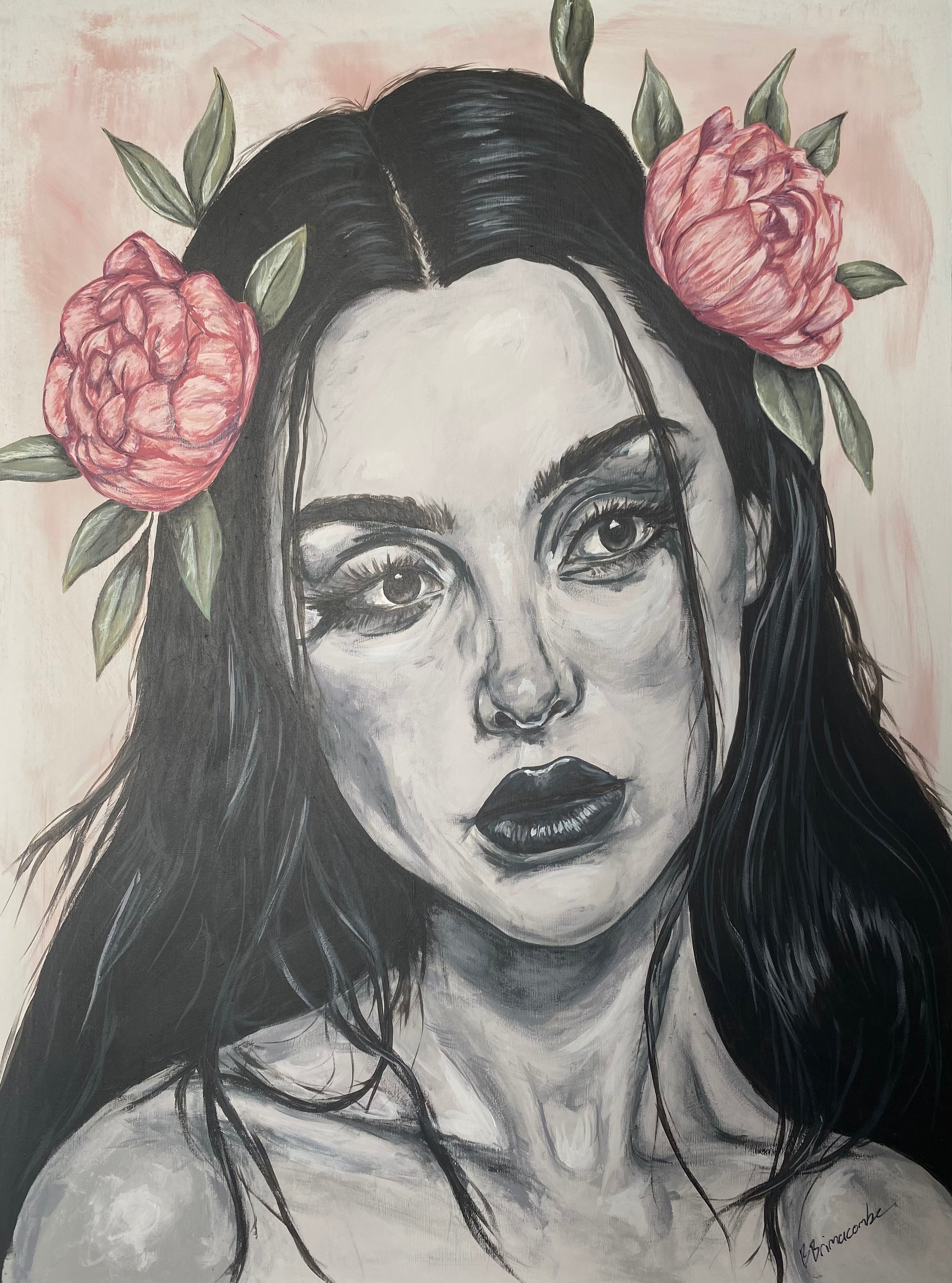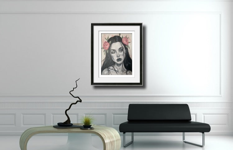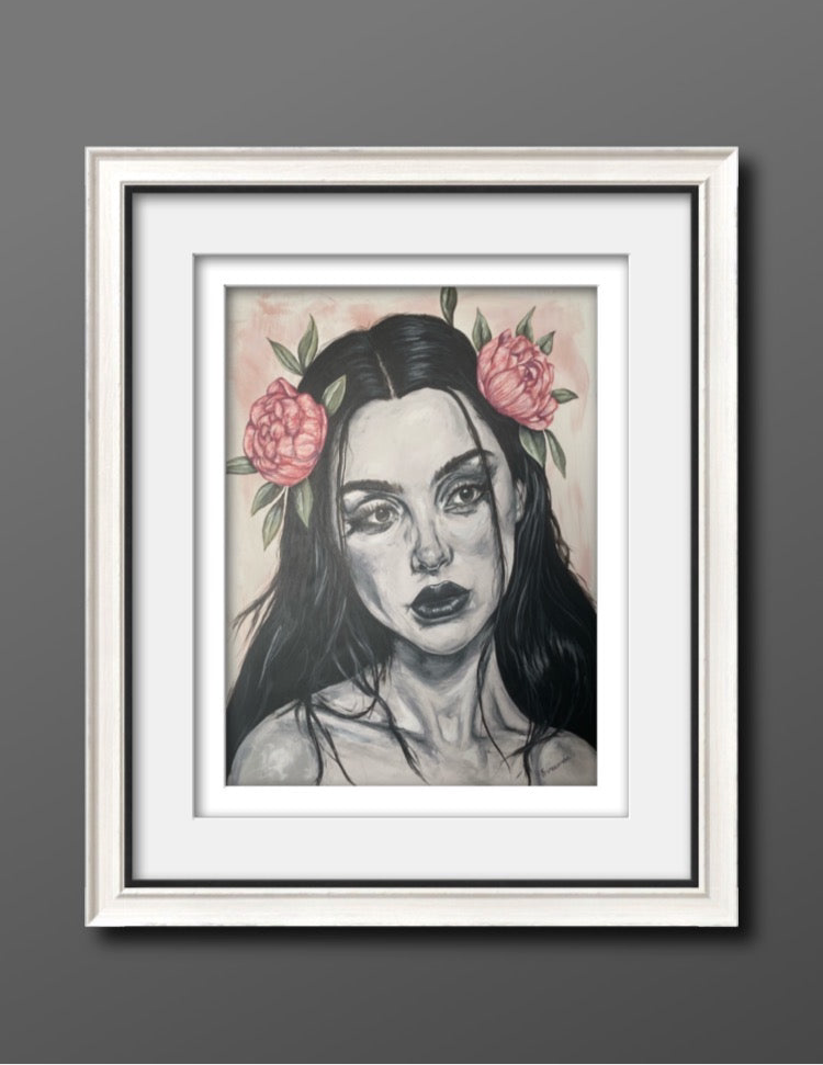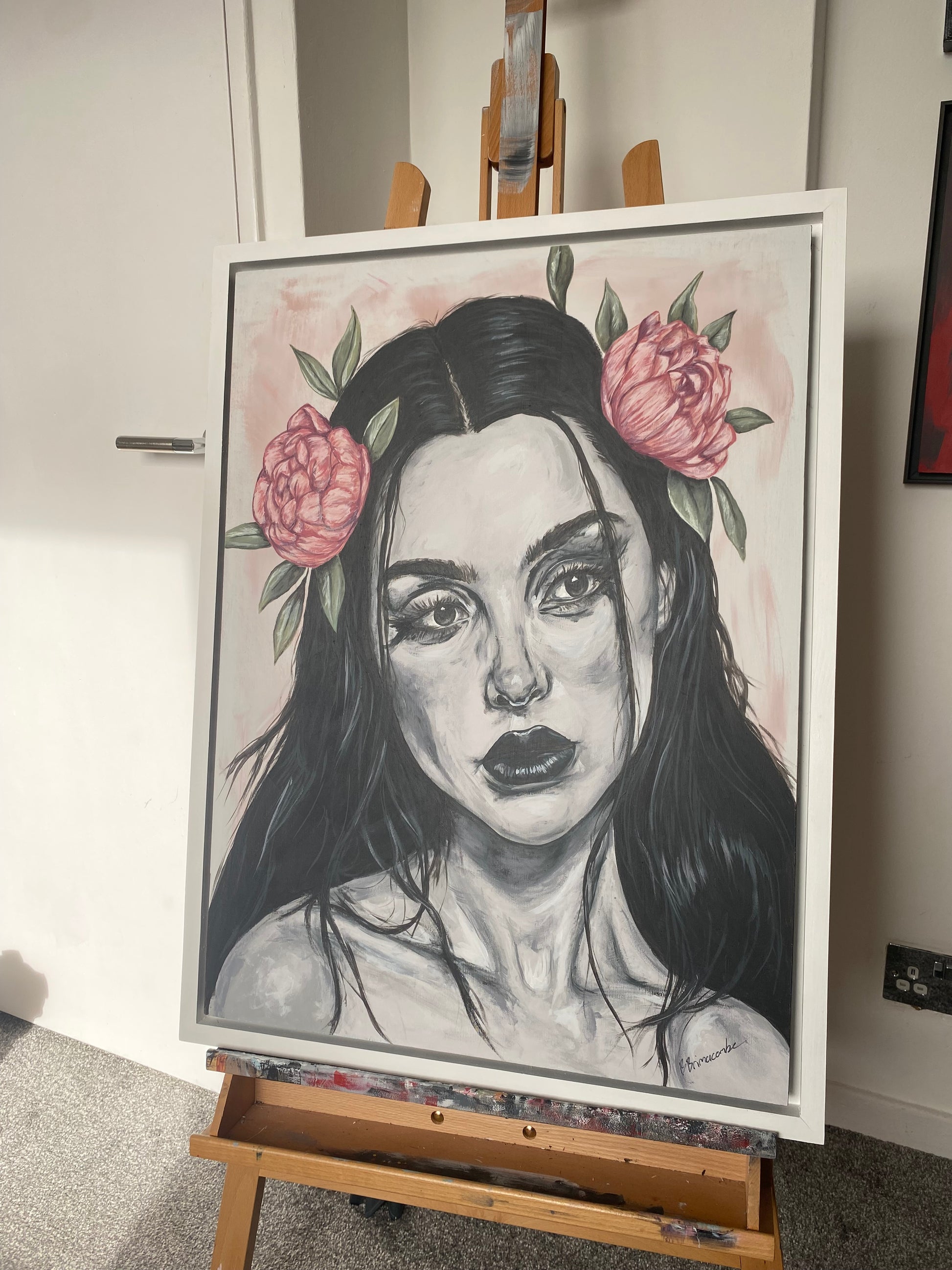 Framed in a white, wooden, floating frame Emulsion paint on MDF board