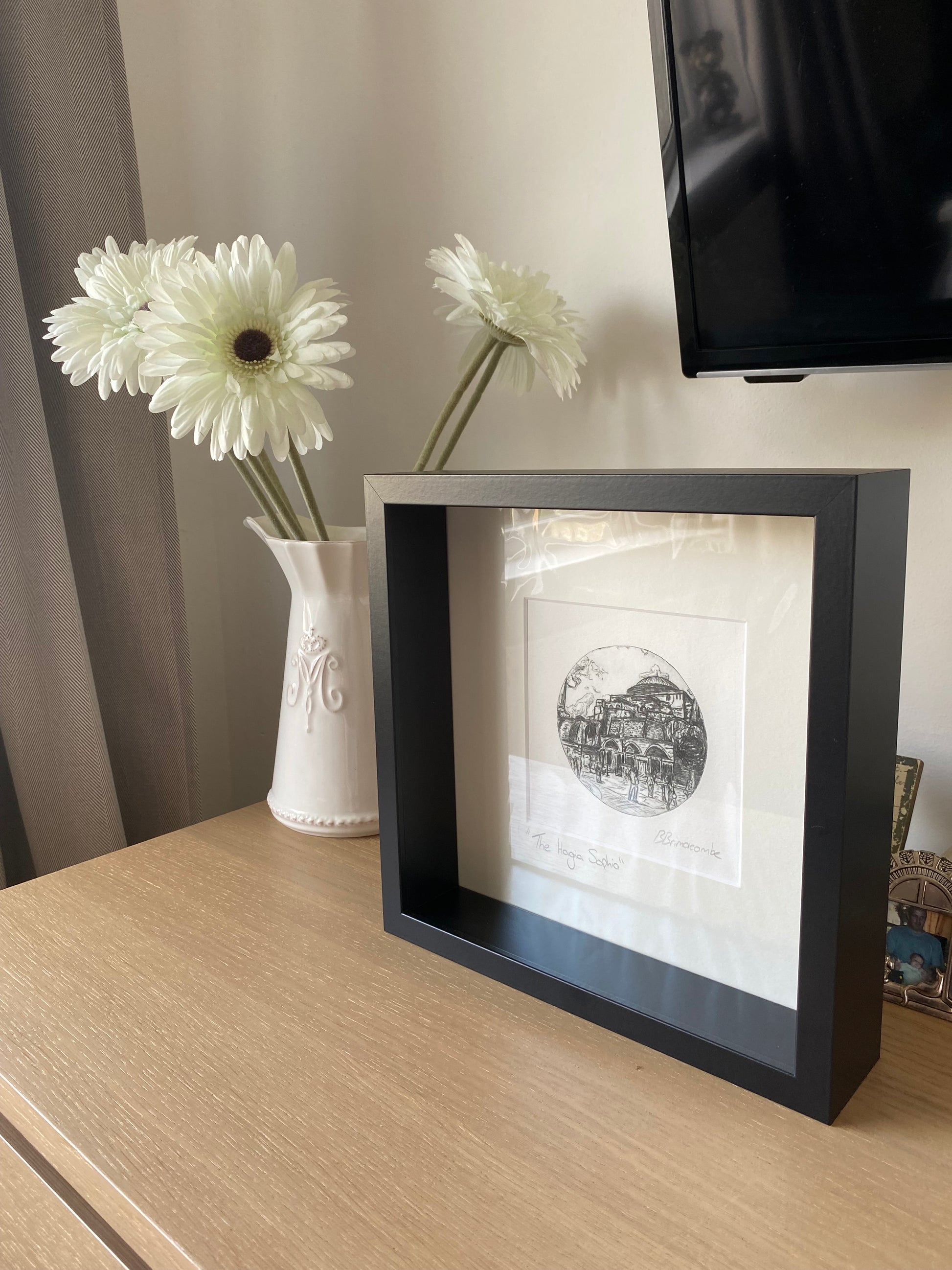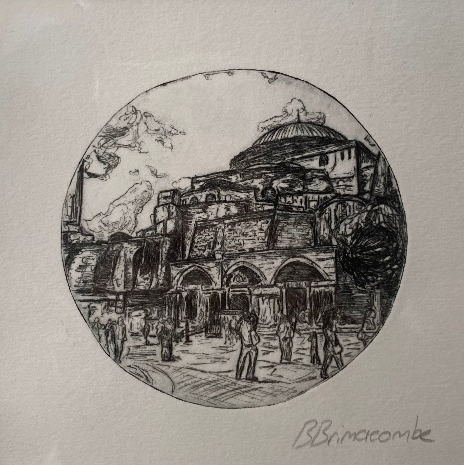 Original dry point etching prints of my travels. Mounted in a square, soft white mount. All mounts fit an IKEA Sannahed frame. Frame not included Mount size: 25 x 25cm Image size: 9cm Turkey