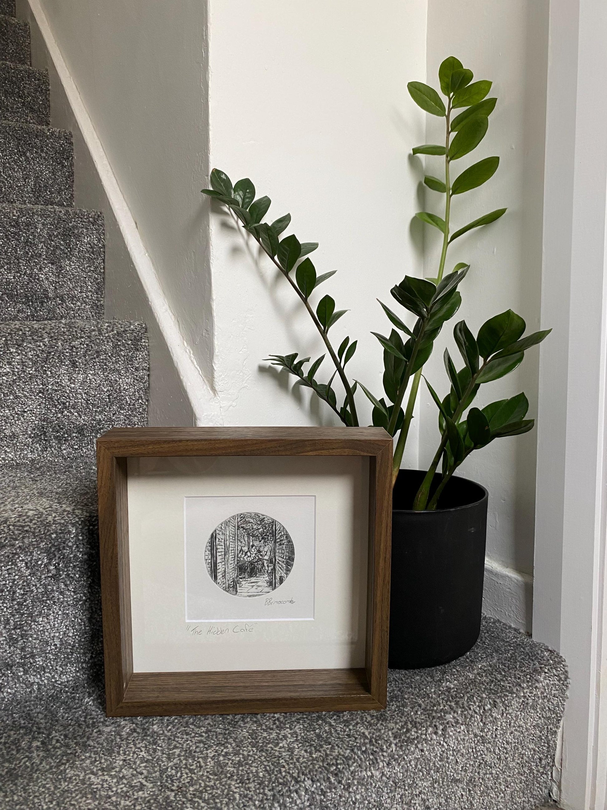 Original dry point etching prints of my travels. Mounted in a square, soft white mount. All mounts fit an IKEA Sannahed frame. Frame not included